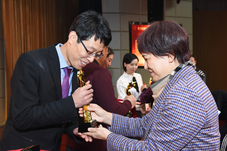 河南省人民医院护理部主任张红梅为获奖者颁奖